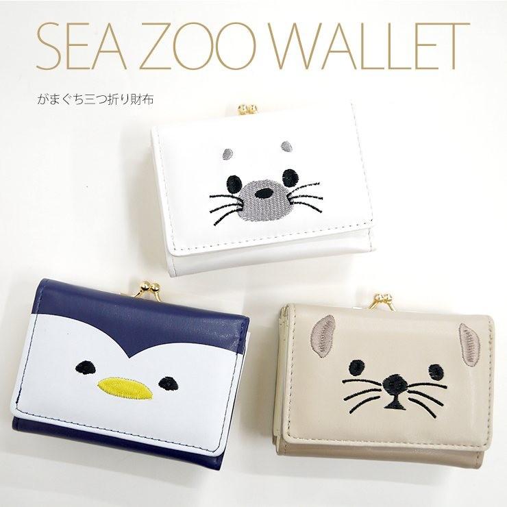 がま口財布 ミニ口金サイフ 三つ折りサイフ 財布 アニマル ラッコ アザラシ ペンギン 海の生き物 刺繍 合皮 かわいい 個性的 アニマルフェイス ホワイト ベージ Sz2 2 バッグ エプロン ブギウギストア 通販 Yahoo ショッピング